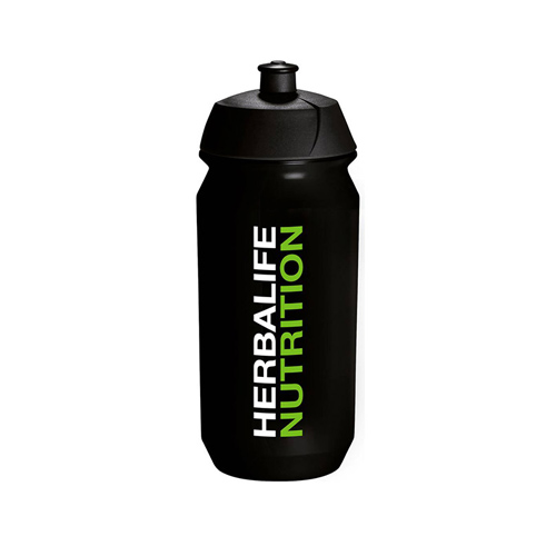 Garrafa desportiva preta com texto HERBALIFE NUTRITION